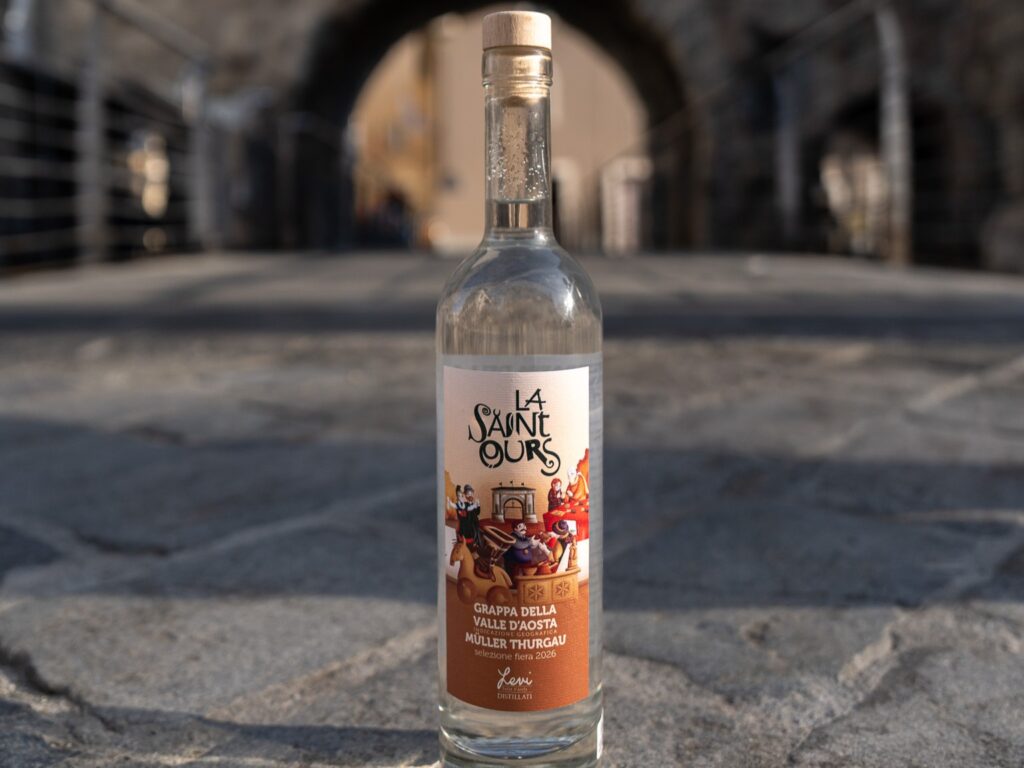 Piccole bottiglie, grandi gesti: Sant’Orso raccontata in una grappa. Arrivano, in occasione della Fiera, 600 bottiglie numerate di Grappa monovitigno di Müller Thurgau…