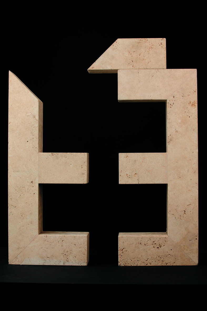 Ne La porta dell’essere l’accento “libera” (Mutilazione per accentuazione) la lettera rendendola verbo, esistenza, mentre in Lapide alla congiunzione le due E che dovrebbero rappresentare il rapporto, pur abbracciate a rappresentare il massimo dell’unità possibile, sono ormai stese, abbattute.